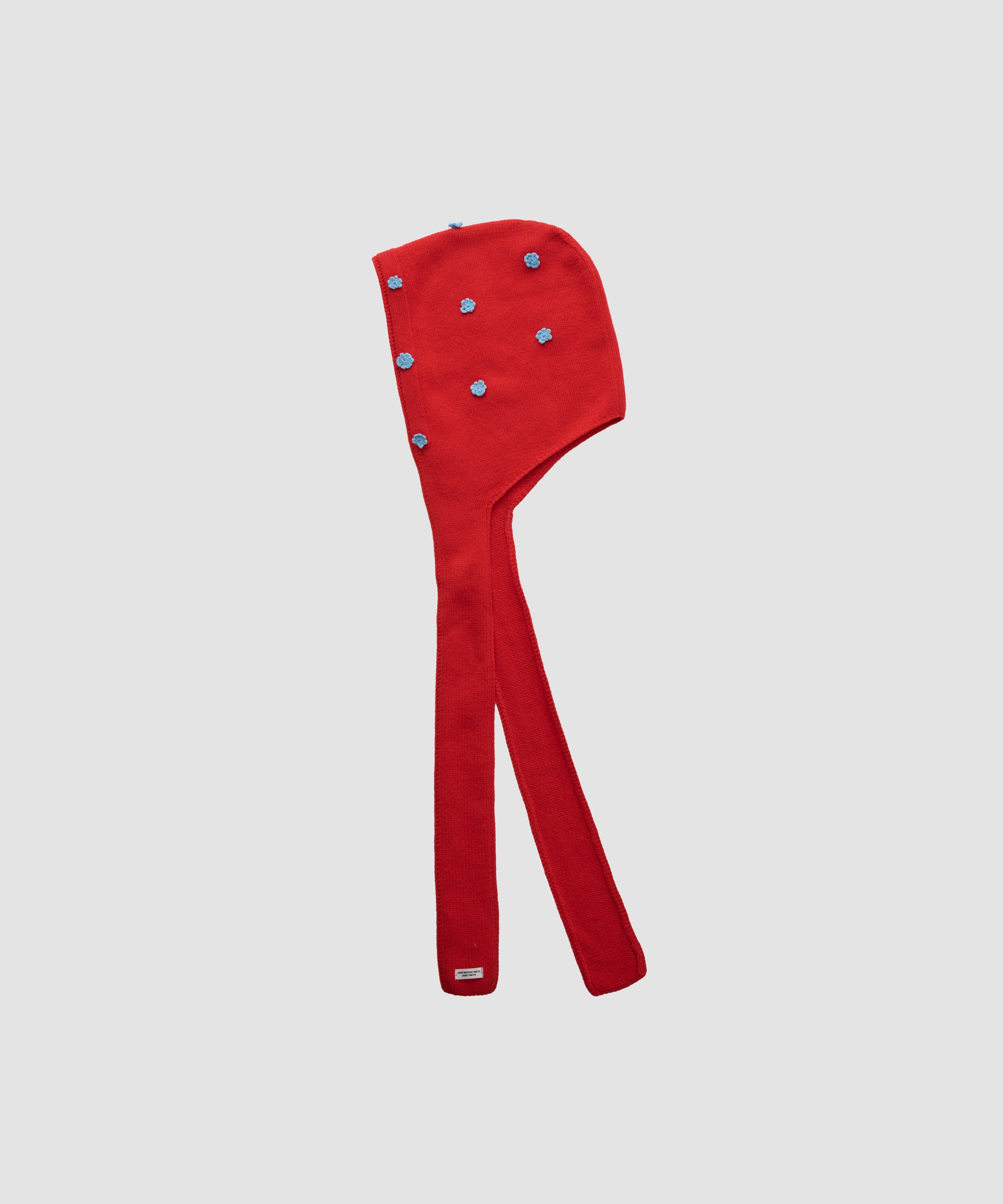 フードストール。柔らかさ、軽さ、膨らみのある糸を作る為に、オーストラリア産のバージンエクストラスーパーファインウールをメインに、数種類の毛を特殊な配合技術でブレンドしています。家庭機の5G天竺目をベースに端~端まで編み続けて作成したフードストール。特殊な風合い出し洗いをかけて、良質な肌触りに仕上げています。