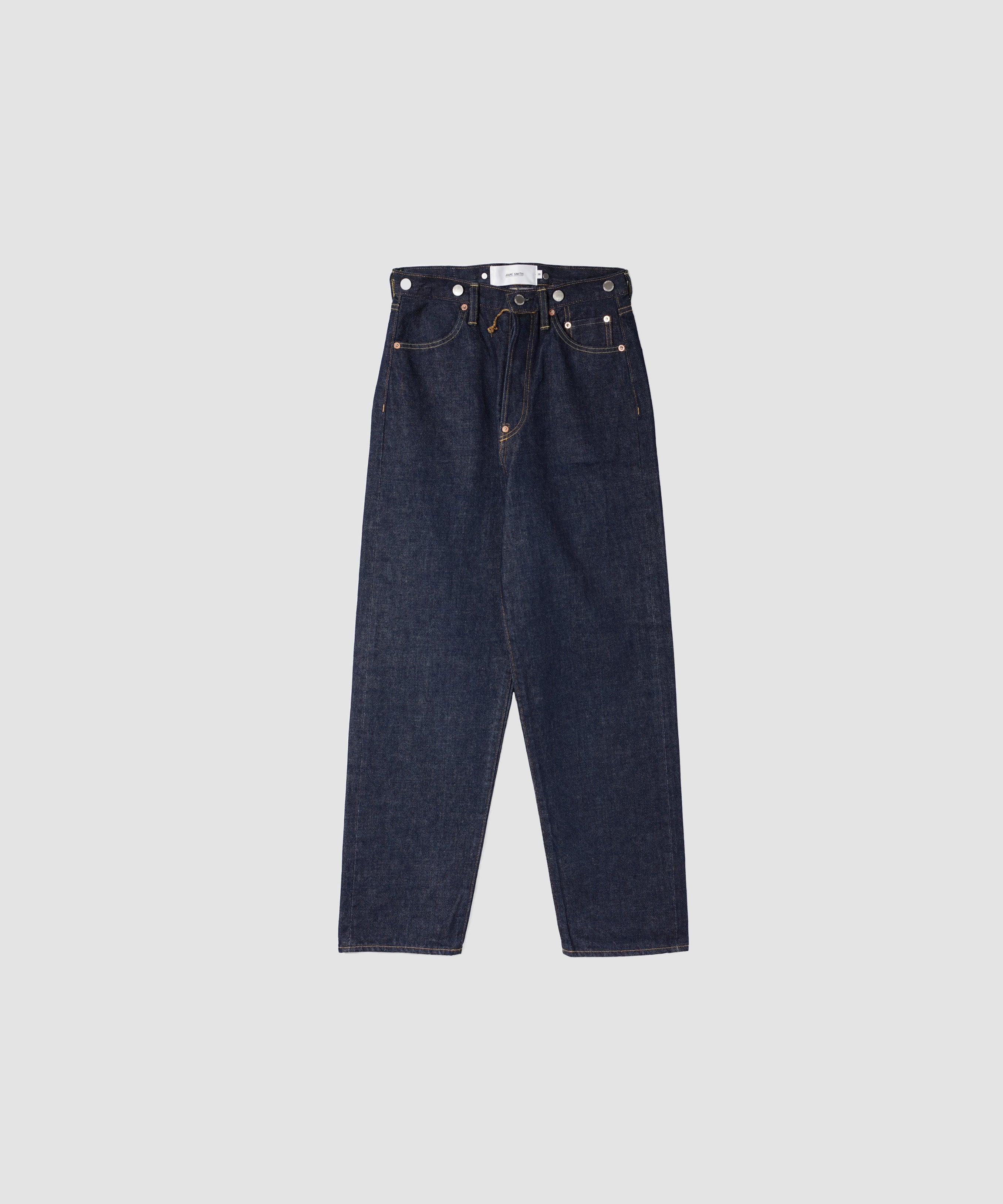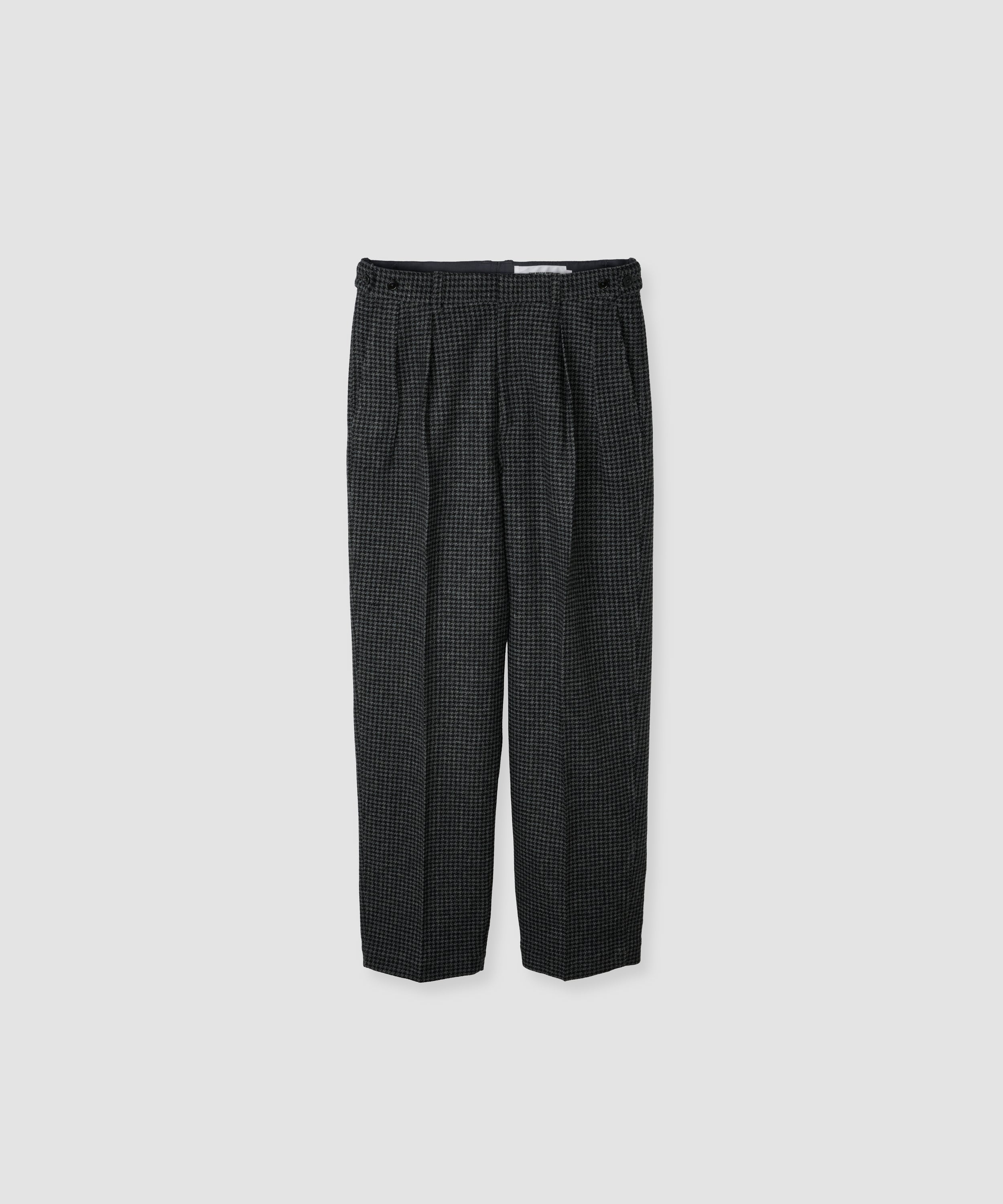 テーパードシルエットのウールスラックス。ウエスト切替利用ポケット、右腰ポケットに忍びポケット、前膝裏打ちあり。フロントのセンタープレスが消えにくいよう2mmのピンタックを施しています。裾口はルイス始末。バックは両玉ポケット。フロントトップボタンはドットボタン。前開きはコイルファスナー。ウエストはマーベルト仕様、前カンつき。生地は梳毛糸平織で、スーツ用として最もポピュラーな生地。表面は滑らかで上質な光沢があります。薄くてコシがあり、通気性に富み、軽く、クリア仕上げを施してさらっとした快適な着心地を実現しています。