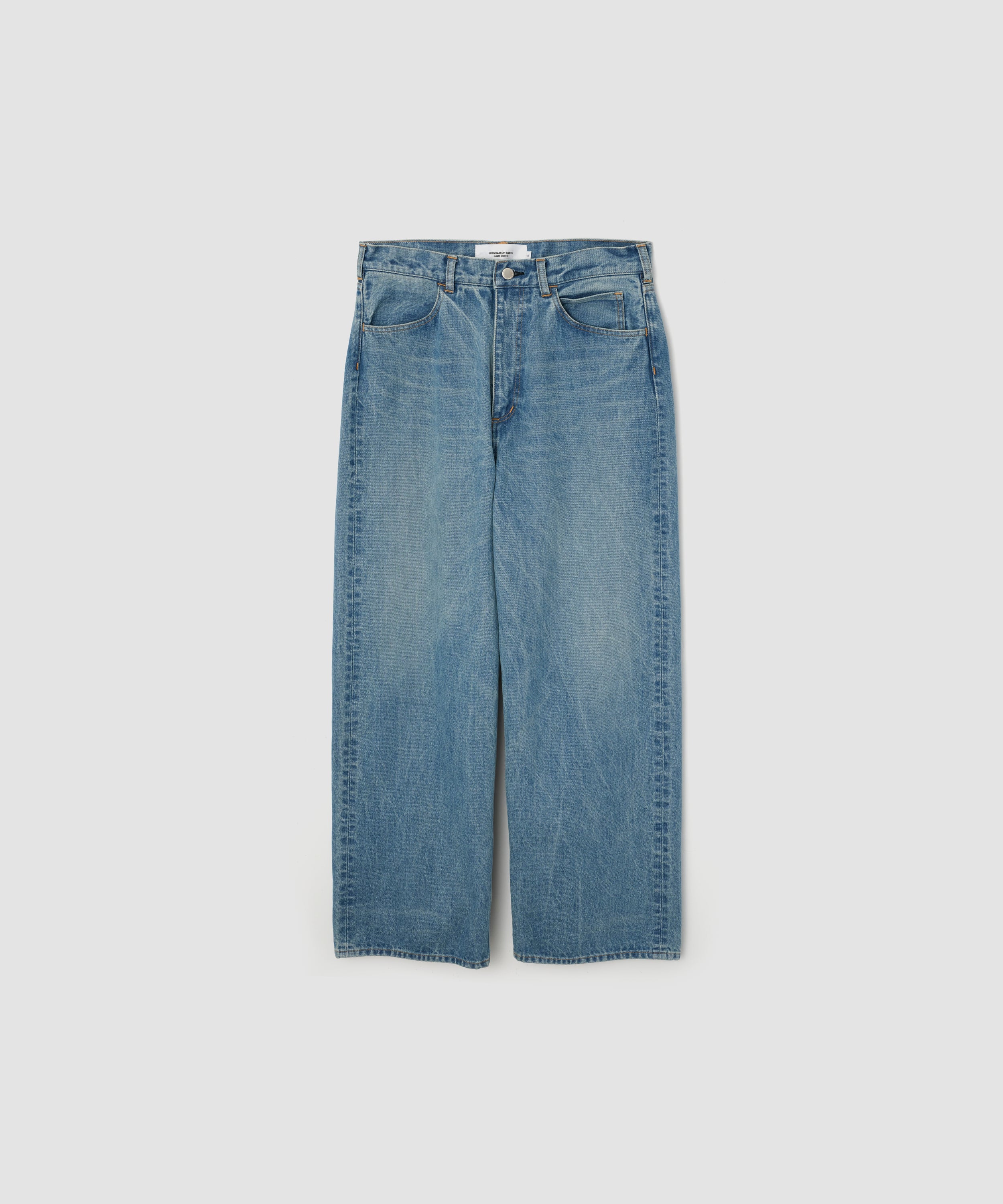 染色はピュアインディゴのみで染色している為、鮮やかな藍色で経年変化が柔らかく摩耗による色落ちがグラデーション的で、境界がソフトなため、ヴィンテージ感が自然に出やすくなっています。