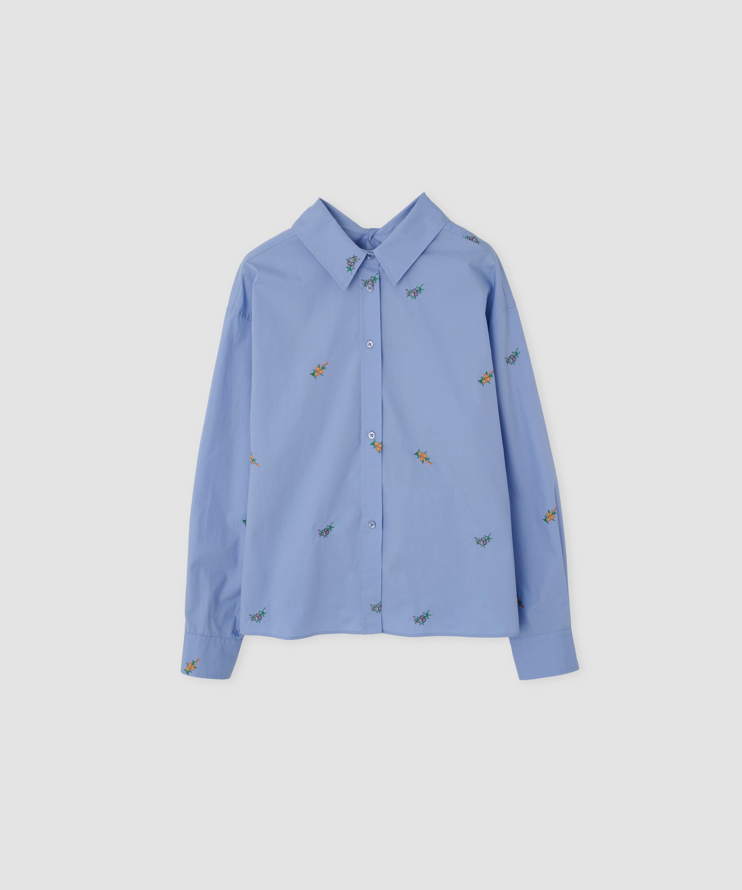 生地はオリジナルで作成した針抜きカットソーにさらにフラワープリントをのせました。通常の編み地に比べ横方向の伸縮性が増すため、着やすい生地になります。
