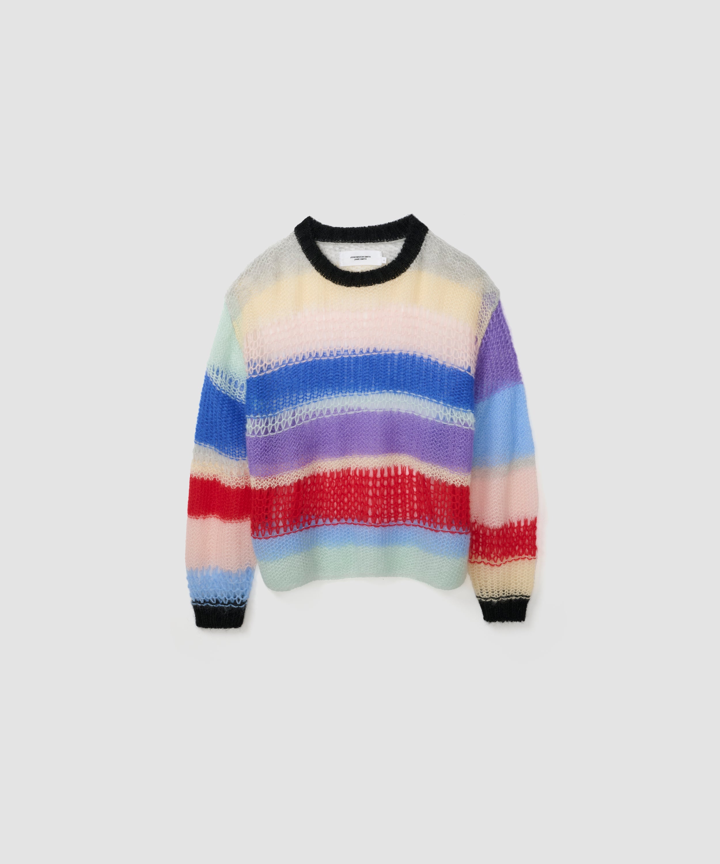 毎シーズン様々なアーティストとコラボレーションし、オリジナルボディのTシャツをキャンバスにアート、カルチャーを提案する企画です。洗いを掛けても斜行、毛羽立ちが少ない長い繊維長のみを使用したコーマ天竺で作成したオリジナルボディです。左脇線の片接ぎの仕様にしてあります。襟裏はタコバインダーで補強。